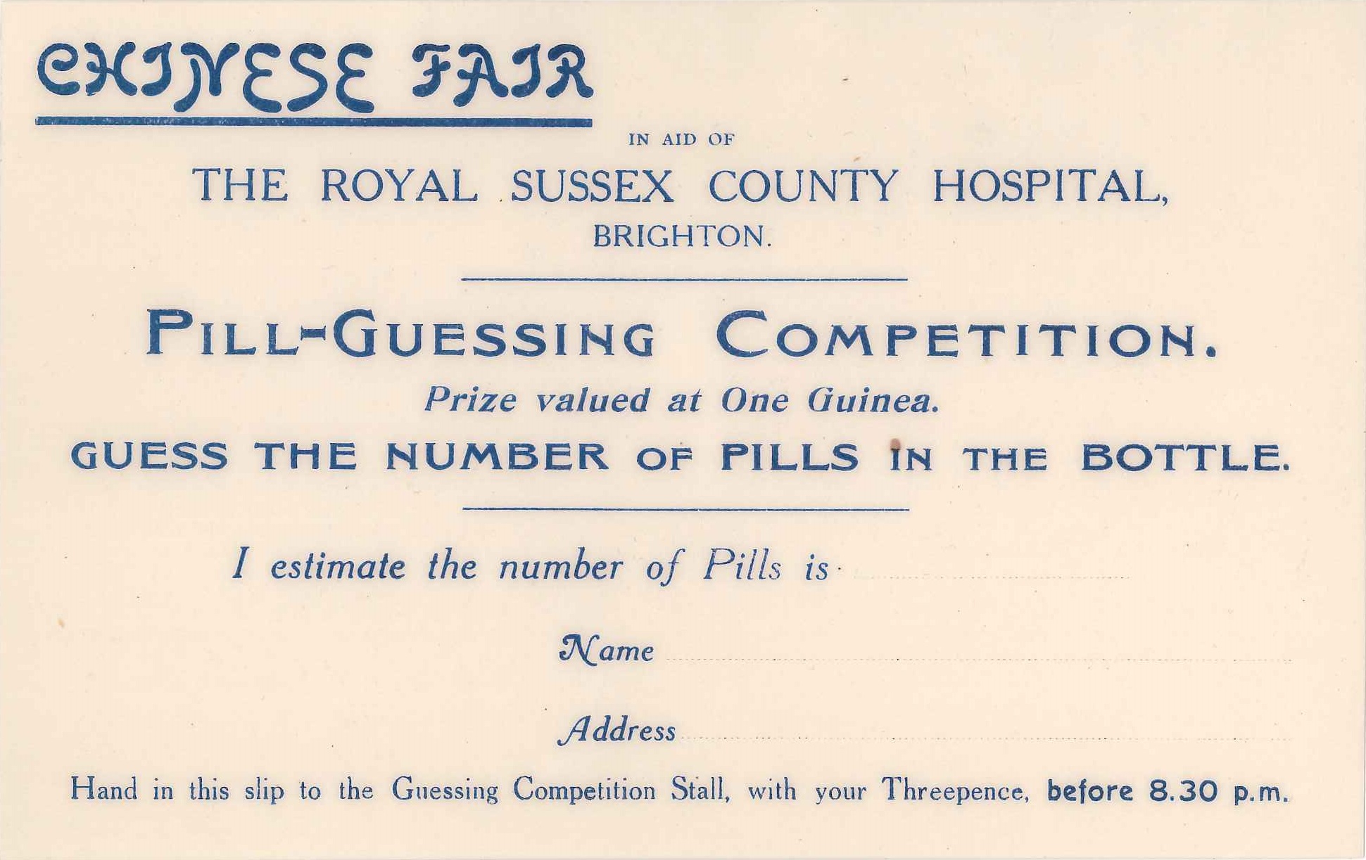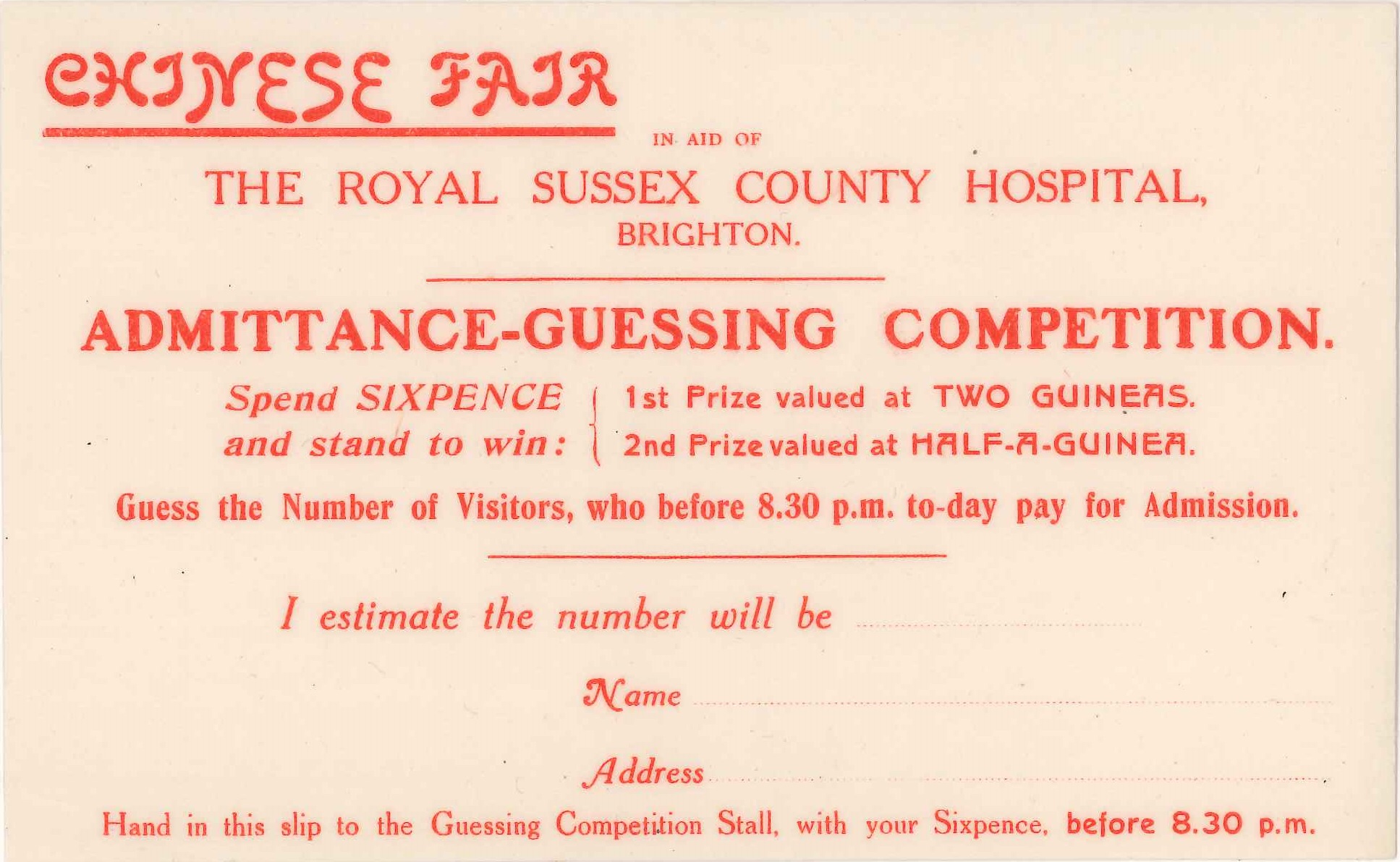 Fairs such as the ‘Chinese Fair’ held at Brighton Dome in November 1920 were regularly held to help fund Royal Sussex County Hospital’s activity, including accommodation, treatment and capital work.